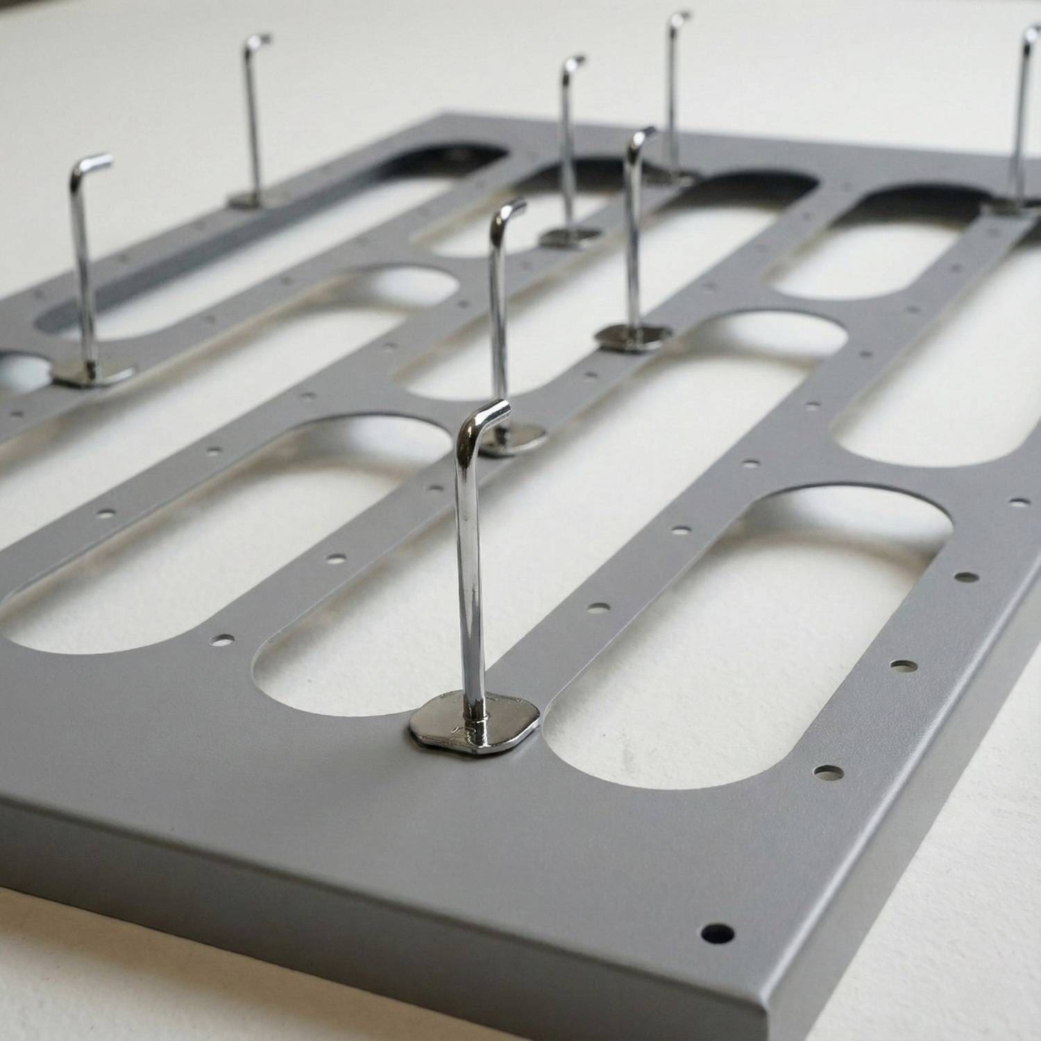 • Industrial quality: Made from 1.5 mm thick steel, this board weighs approx. 2 kg. It is extremely robust and holds even heavy custom sabers without any problems.
