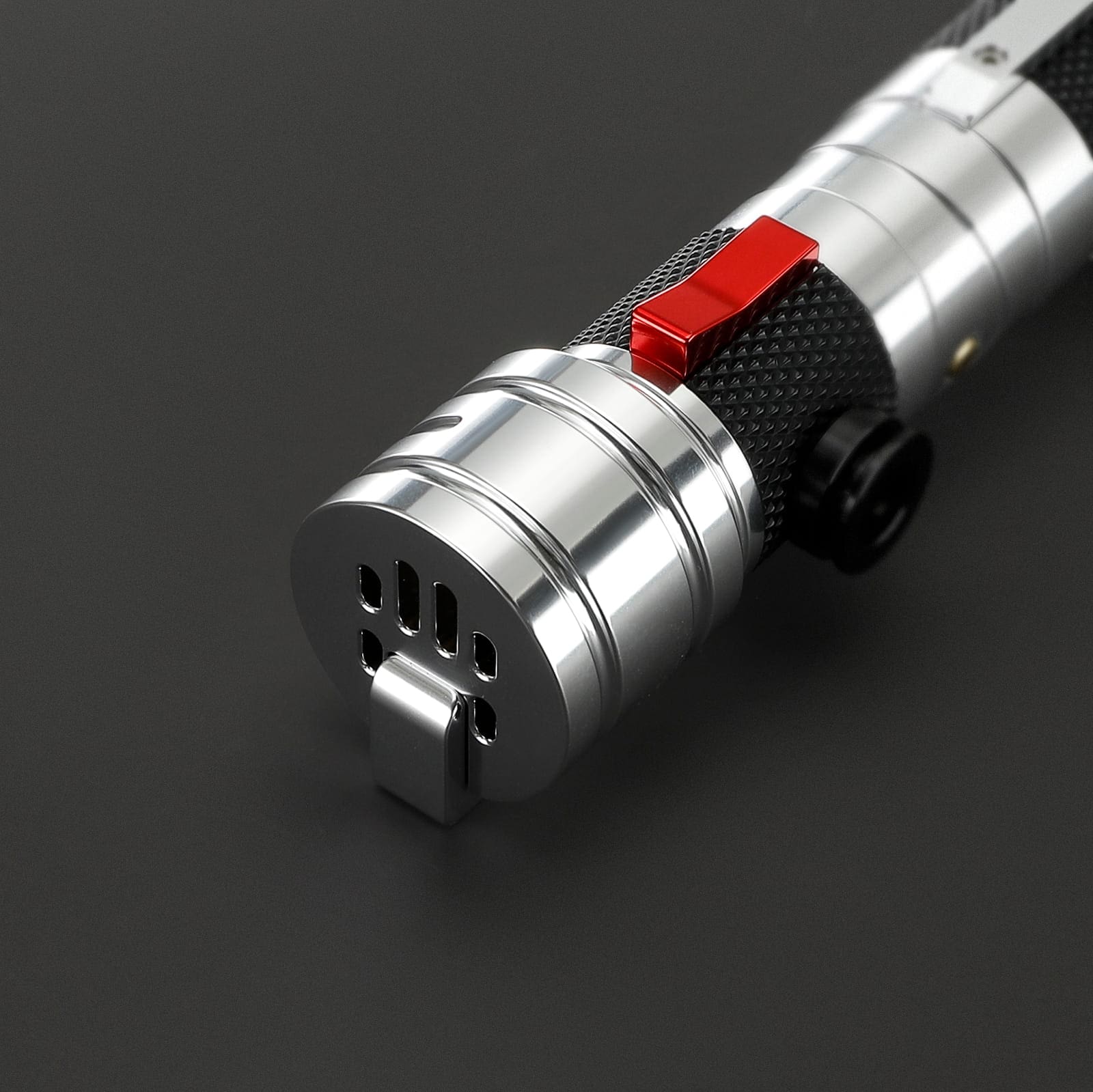 *VHC = Variable Hilt Components: un système de construction modulaire pour les sabres laser. Les pièces telles que l’émetteur, la poignée ou le pompon sont librement interchangeables et combinables entre elles grâce à des filetages identiques.